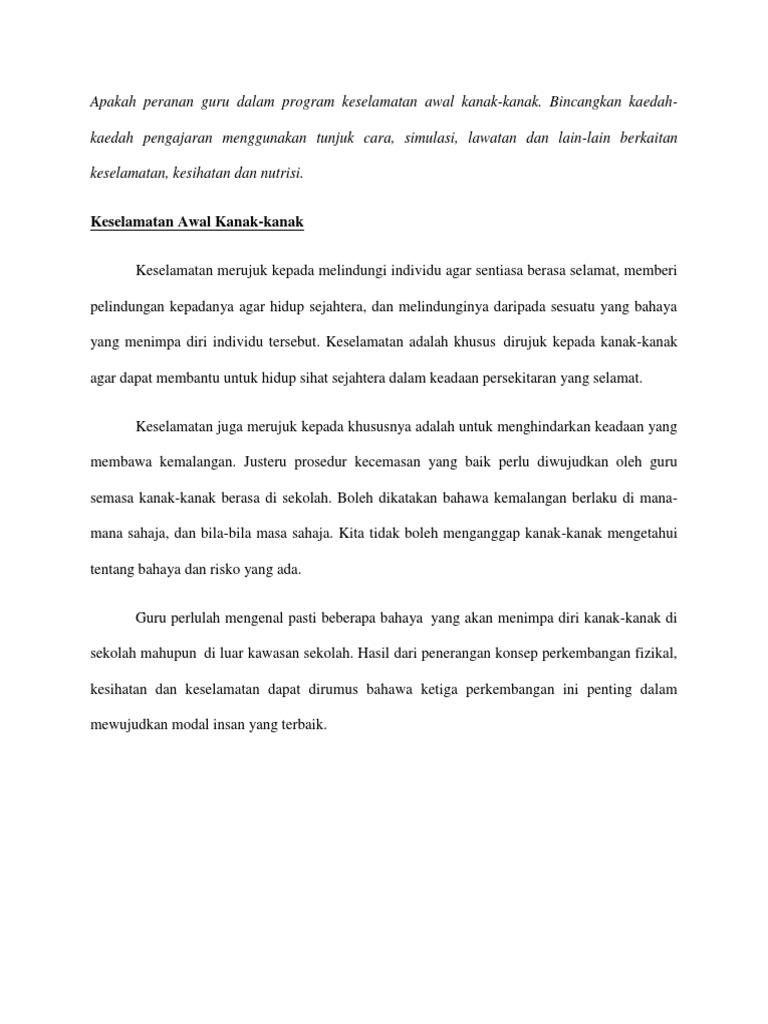 Tugasankump Peranan Guru Dalam Program Keselamatan Awal Kanak