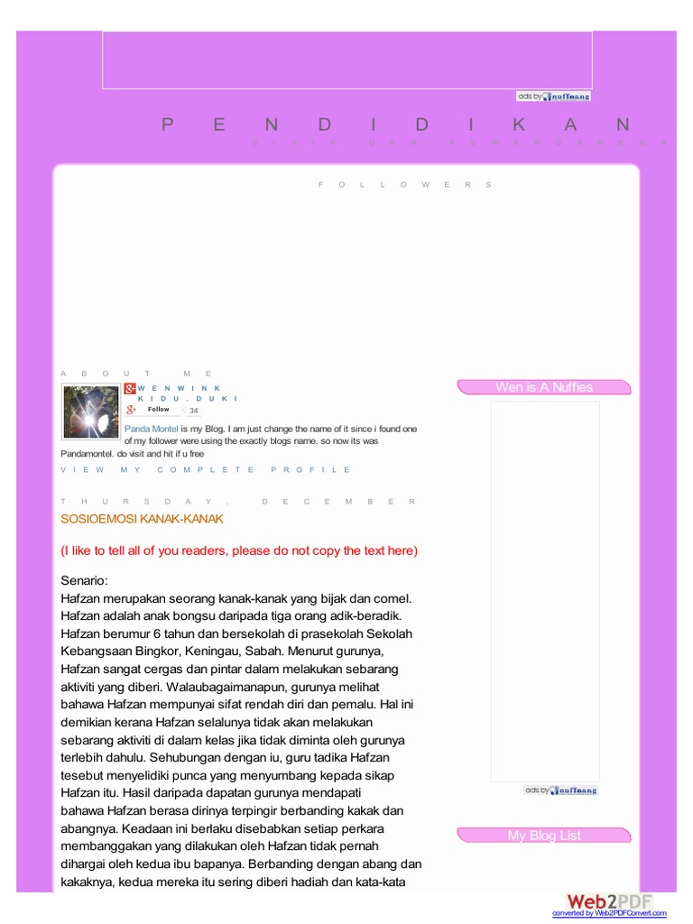 P E N D I D I K A N A W A L K A N A K K A N A K I Like To Tell All Of You Readers Please Do Not Copy The Text Here