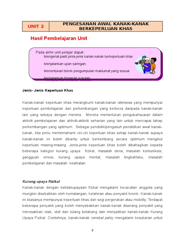 Muscular dystrophy Masalah kecacatan fizikal Cerebral palsy sawanseizure disorders 33. Masalah obesiti mengganggu kehidupan akibat pengambilan jumlah makanan yang sama tetapi kurang menggunakan tenaga untuk aktiviti-aktiviti fizikal. Konsep melibatkan keadaan jasmani seseorang yang mengganggu fungsi kehidupan sehariannya.