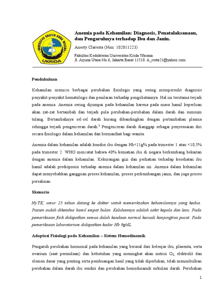 HASIL DAN PEMBAHASAN Penelitian ini menunjukkan bahwa prevalensi anemia pada ibu hamil di Puskesmas Kairatu adalah 875 dengan kategori anemia terbanyak adalah anemia. Untuk memenuhi permintaan darah merah untuk bayi badan ibu mula menghasilkan lebih banyak darah merah dan plasma. Terdapat beberapa jenis pemeriksaan yang perlu dibuat oleh doktor untuk tujuan itu seperti berat badan tekanan darah degupan jantung ujian darah dan ujian air kencing.