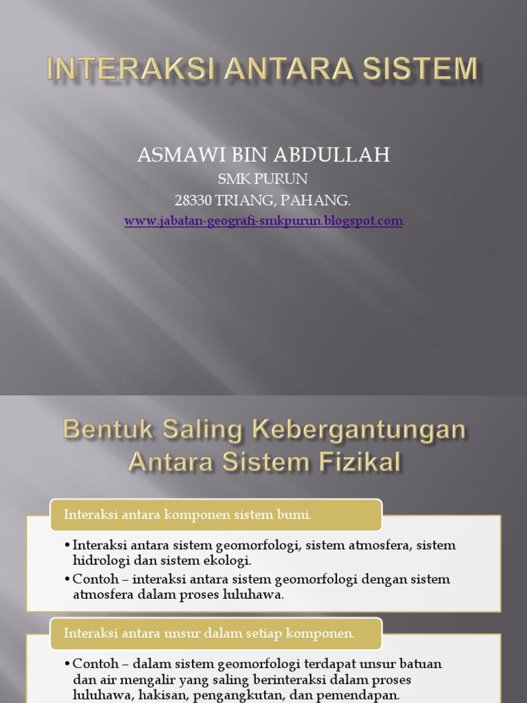 Aug 10 2017 KULIAH 1 ALAM SEKITAR FIZIKAL SEBAGAI SUATU SISTEM. Bab ini turut menghuraikan tajuk- tajuk seperti konsep interaksi pola interaksi kepentingan dan halangan dalam interaksi serta cara-cara mewujudkan interaksi yang berkesan dalam bilik darjah. Menjelaskan konsep dan model komunikasi.
