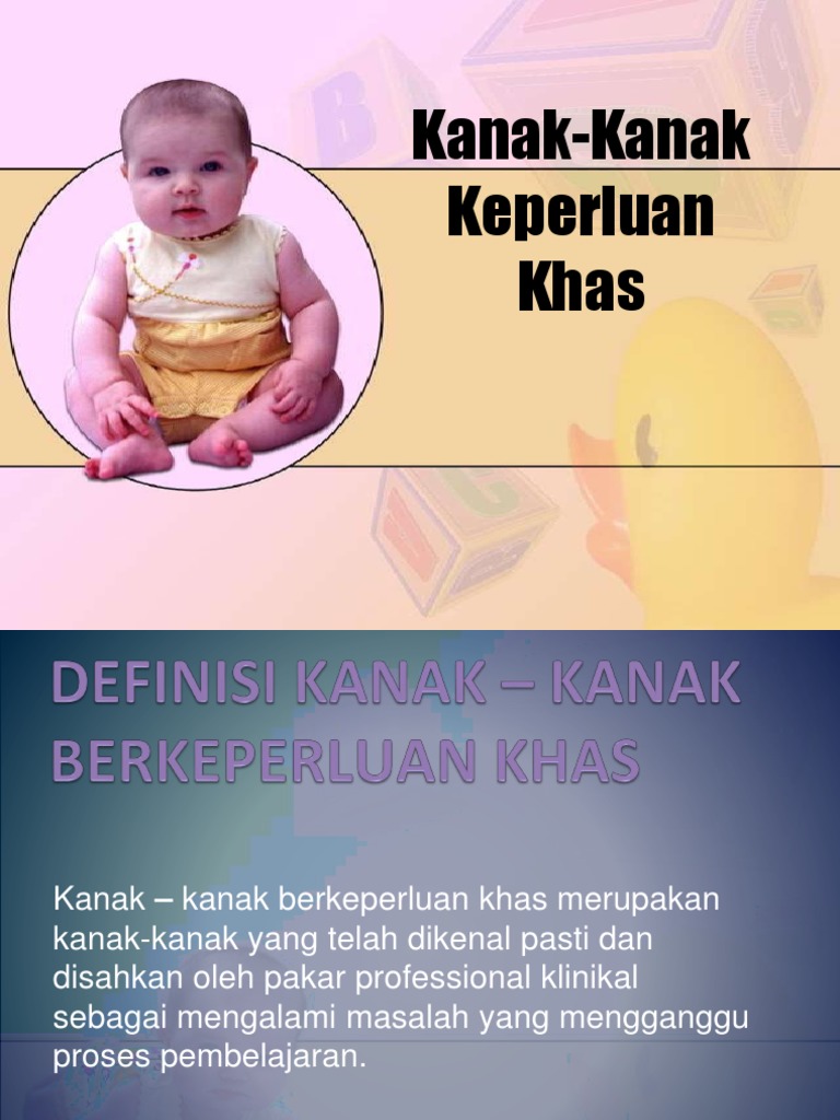 13112010 Masalah kanak-kanak berkeperluan khas ini mungkin disebabkan oleh faktor-faktor seperti perkembangan prenatal yang kurang sempurna kerana penyakit kekurangan zat makanan ataupun dadah. Definisi Kanak Kanak Berkeperluan Khas Masalah Fizikal. Kanak-kanak ini dikategorikan sebagai kanak-kanak berkeperluan khas.