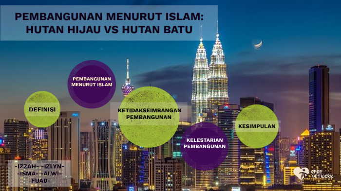 Tun Dr Mahathir Mohamad berkata Malaysia tidak akan berjaya sebagai sebuah negara maju sekiranya gagal mengimbangi pembangunan fizikal dengan pemeliharaan alam semula jadi dan mengekalkan persekitaran sedia ada. 20042019 Imbangi pembangunan fizikal pelihara alam sekitar untuk dijadikan negara maju Tun M. Penilaian pembangunan adalah berpusat kepada konsep tauhid iaitu Allah sebagai pemilik mutlak dan manusia sebagai khalifah yang bertanggungjawab membangunkan alam semesta berlandaskan kepada al-Quran dan as-Sunnah.