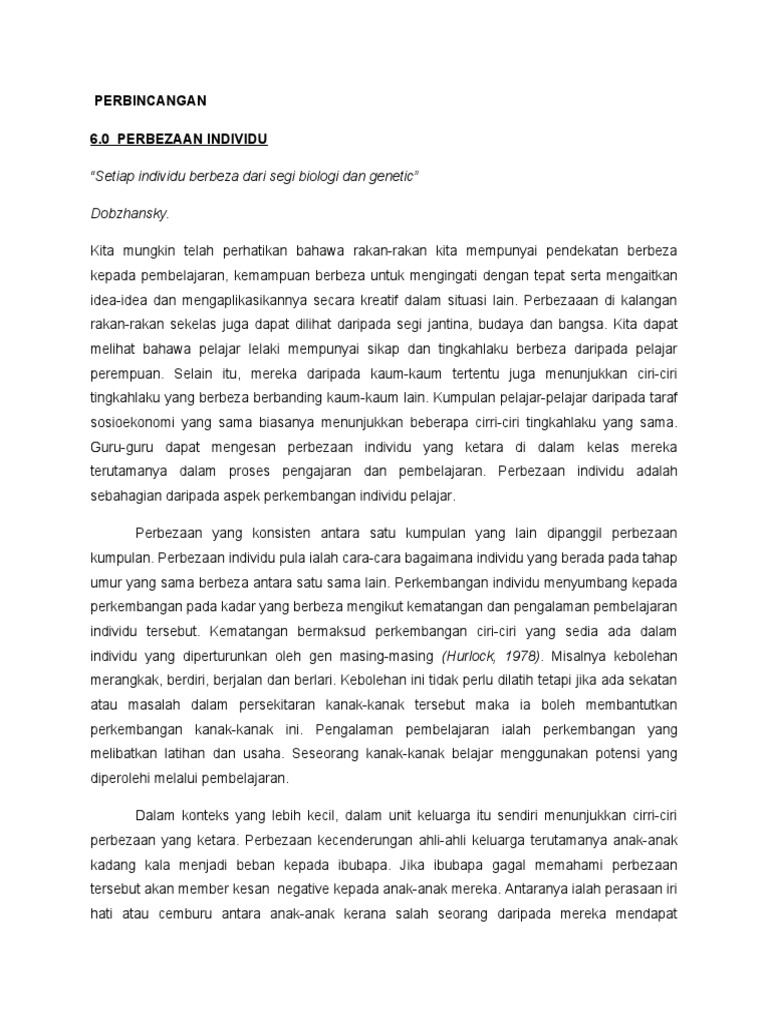 Norhayati Mohd Noor 2. Representasi Contoh Surat Rayuan Tindakan Tatatertib. Menurut Khairul Yusri 2007 perbezaan individu bermaksud variasi atau ketidaksamaan individu daripada norma kumpulannya sama ada dari segi sifat kognitifemosi fizikal moral tingkah laku sosial atau bakat dan aspek aspek yang lain mungkin terdapat.